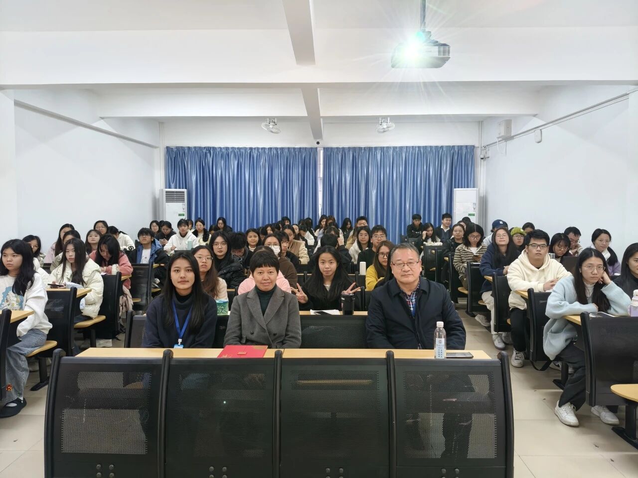 王教授作为心理学博士、博士后,曾为多地公职人员、教师开讲,现场结合 “职场压力”“校园人际” 案例引发共鸣,师生围绕“焦虑与积极心态平衡”进行交流,讲座现场气氛热烈,互动有序。
