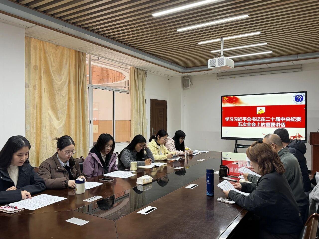 会议第一项议程是理论学习。参会人员集体学习了习近平总书记在二十届中央纪委五次全会上的重要讲话精神,学习了《中国共产党思想政治工作条例》。通过学习,进一步提高政治站位,深入推动党建引领与立德树人、评建工作深度融合,不断提高文教公司党总支的工作能力,锤炼廉洁高效的干部队伍。